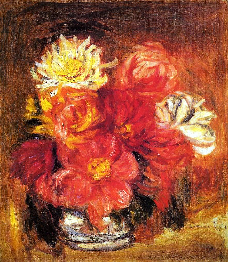 Your oil painting reproduction of "Dahlias" by Pierre-Auguste Renoir will be handmade to replicate all the brushstroke details, colors, and shading of the original work of art. Please be assured that you will receive a magnificent oil painting.