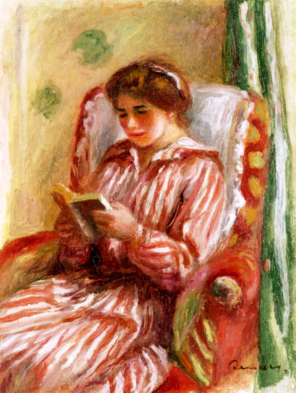 Your oil painting reproduction of "Gabrielle Reading" by Pierre-Auguste Renoir will be handmade to replicate all the brushstroke details, colors, and shading of the original work of art. Please be assured that you will receive a magnificent oil painting.