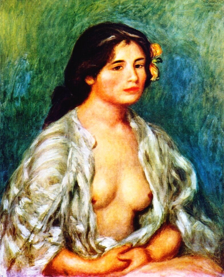 Your oil painting reproduction of "Gabrielle with Open Blouse" by Pierre-Auguste Renoir will be handmade to replicate all the brushstroke details, colors, and shading of the original work of art. Please be assured that you will receive a magnificent oil painting.