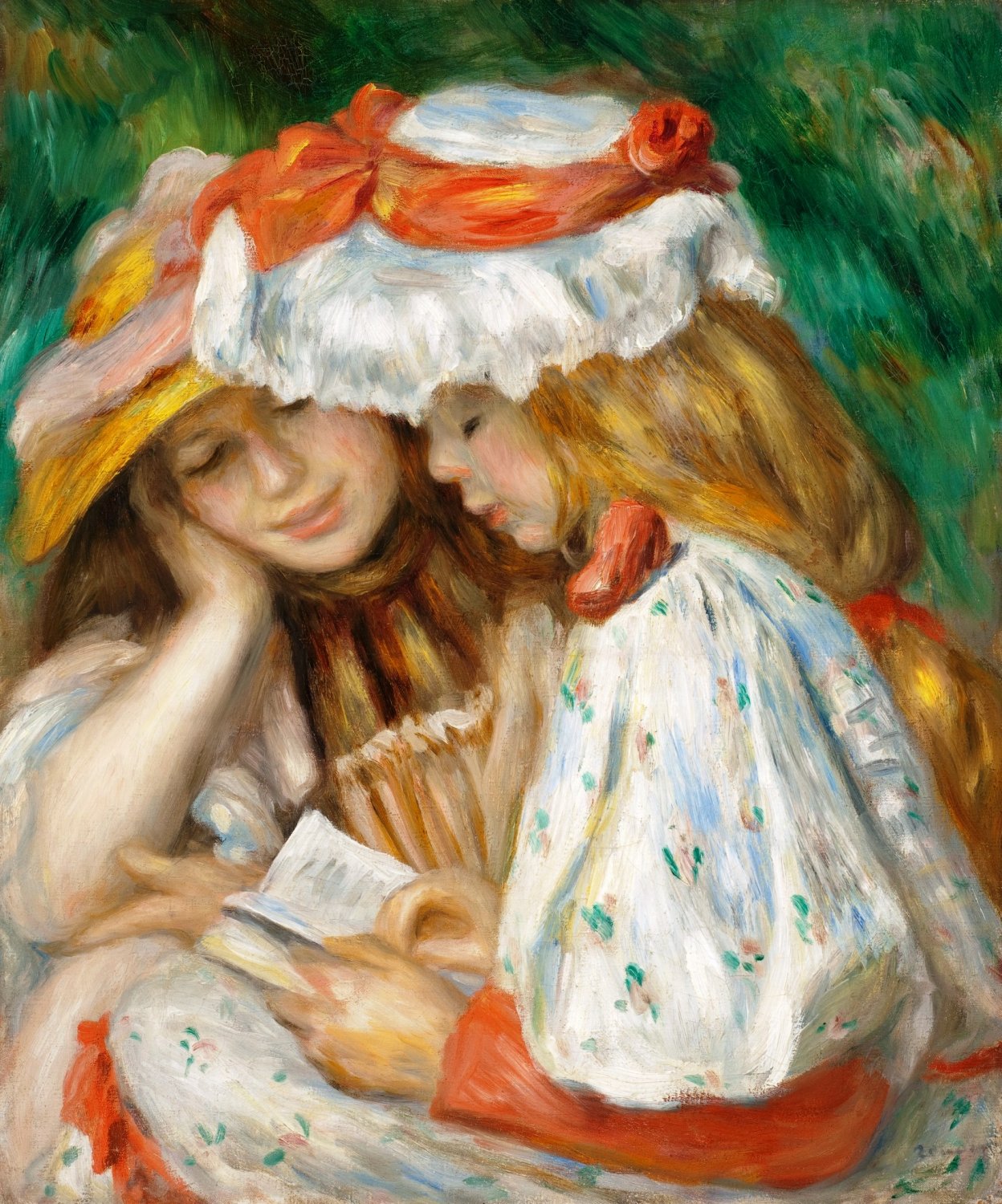 Your oil painting reproduction of "Two Girls Reading" by Pierre-Auguste Renoir will be handmade to replicate all the brushstroke details, colors, and shading of the original work of art. Please be assured that you will receive a magnificent oil painting.
