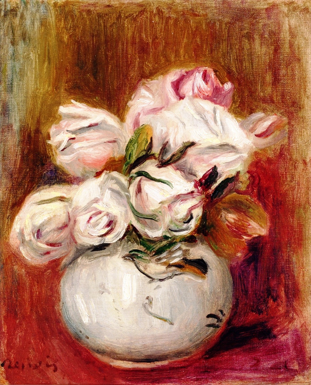 Your oil painting reproduction of "White Roses" by Pierre-Auguste Renoir will be handmade to replicate all the brushstroke details, colors, and shading of the original work of art. Please be assured that you will receive a magnificent oil painting.