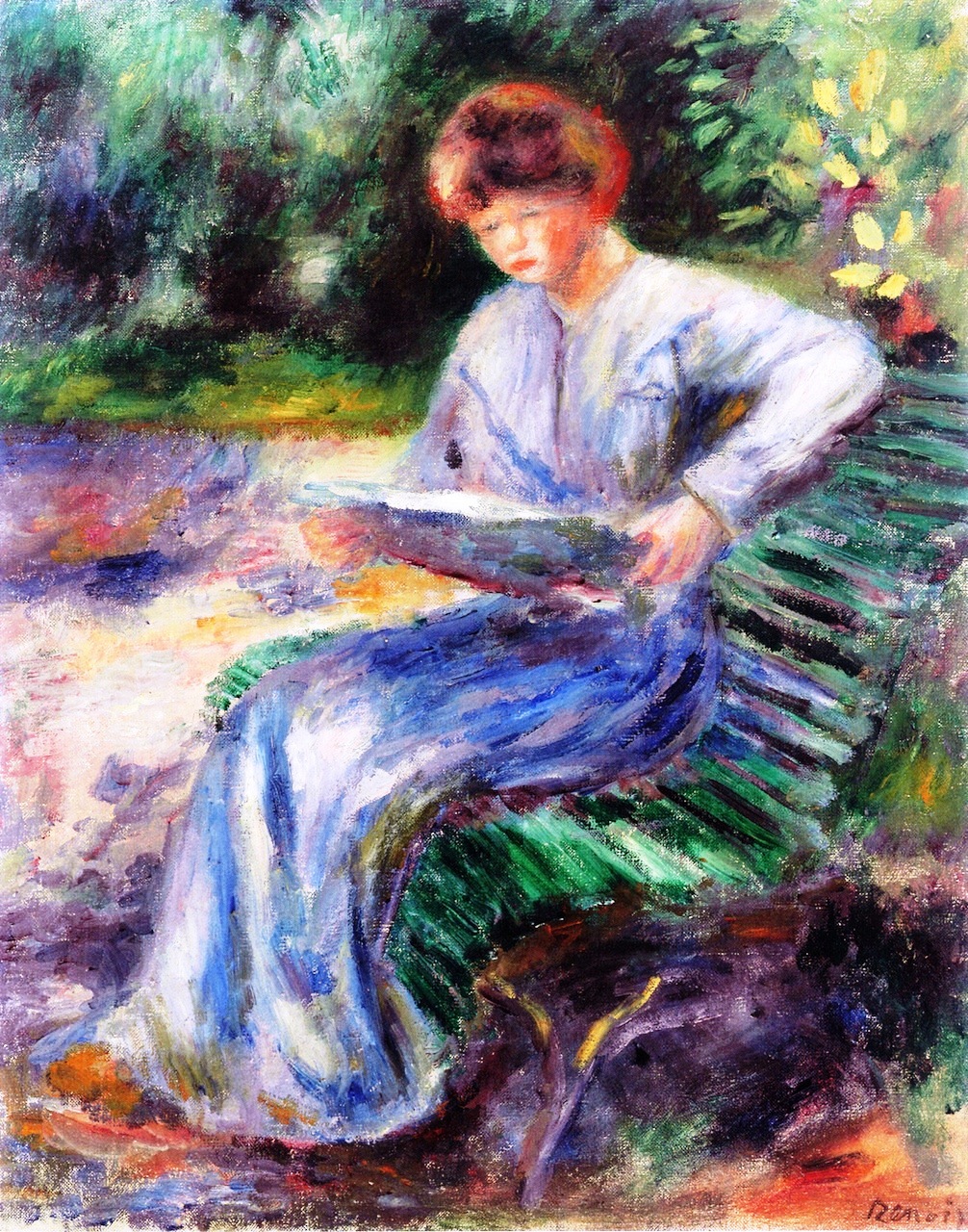 Your oil painting reproduction of "Woman Seated on a Bench, Reading" by Pierre-Auguste Renoir will be handmade to replicate all the brushstroke details, colors, and shading of the original work of art. Please be assured that you will receive a magnificent oil painting.