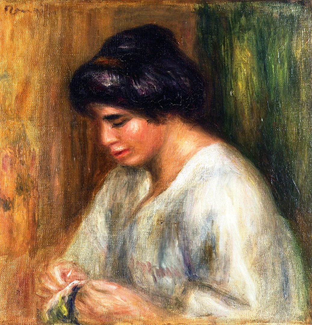 Your oil painting reproduction of "Woman Sewing" by Pierre-Auguste Renoir will be handmade to replicate all the brushstroke details, colors, and shading of the original work of art. Please be assured that you will receive a magnificent oil painting.
