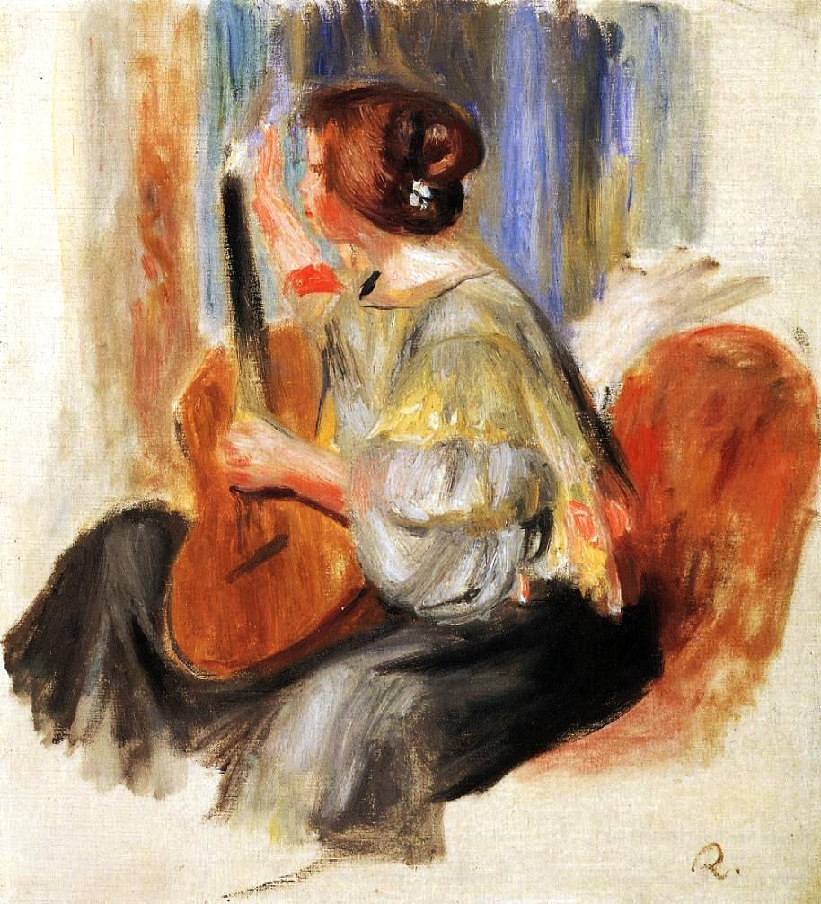 Your oil painting reproduction of "Woman with Guitar" by Pierre-Auguste Renoir will be handmade to replicate all the brushstroke details, colors, and shading of the original work of art. Please be assured that you will receive a magnificent oil painting.
