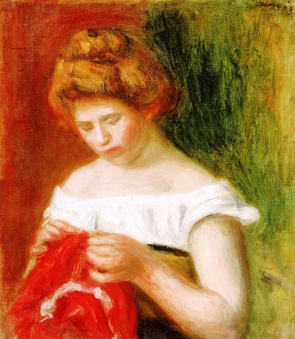 Your oil painting reproduction of "Young Woman Sewing" by Pierre-Auguste Renoir will be handmade to replicate all the brushstroke details, colors, and shading of the original work of art. Please be assured that you will receive a magnificent oil painting.