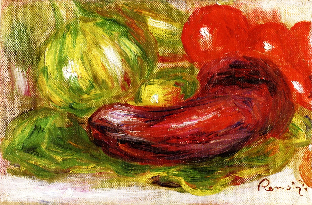 Your oil painting reproduction of "Zucchini, Tomatoes and Eggplant" by Pierre-Auguste Renoir will be handmade to replicate all the brushstroke details, colors, and shading of the original work of art. Please be assured that you will receive a magnificent oil painting.
